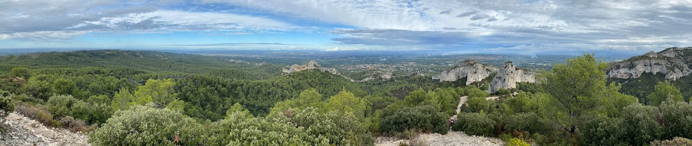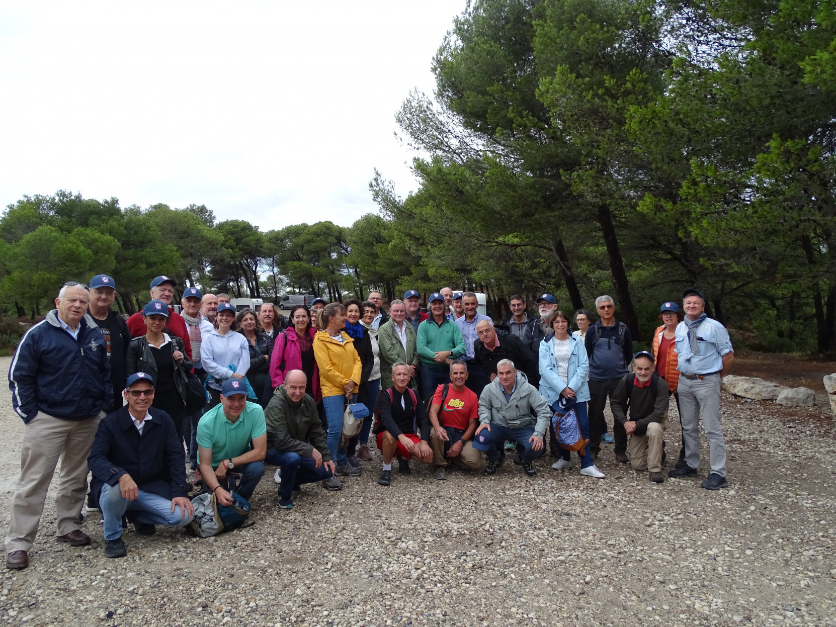 Les retrouvailles ne pouvaient se satisfaire d’une seule journée. Quelques camarades du Politburo de la 83 avait concocté pour le lendemain un programme dense et varié qui devait commencer par une grimpette au Ventoux. La météo humide et hostile s’y opposa mais la race d'aiglons jamais vassale et ses conjoints montèrent sans peur vers le soleil ; timide certes ; en optant pour une randonnée dans les Alpilles au plateau de la Caume. Contre le vent qui voulait la dompter, la joyeuse troupe alla déjeuner et flâner dans la charmante localité de Saint-Rémy-de-Provence. Le sol n’étant qu’une escale, elle s’enfonça au cours de l’après-midi dans les carrières de calcaire des Baux-de-Provence pour y suivre le magnifique spectacle des cathédrales de lumière. Enfin, ayant toujours à lutter, le combat s’acheva au château de Richebois par une chaleureuse soirée. Malgré les rires et les agapes, les absents et les disparus étaient dans les pensées de chacun. Jeannot[1], notre délégué de promotion, aigle qui a quitté les hommes et qui fait maintenant rire les cieux, a dû bien se marrer là-haut lorsqu’avant de se séparer une poussine (qu'il a bien connu puisqu’il l’a même épousée) a été élue démocratiquement à la manière soviétique nouvelle déléguée de promotion. Merci Isabelle[2] pour avoir accepté de bon cœur la mission. Le Politburo s’engage à t’aider pour boucler le plan quinquennal.