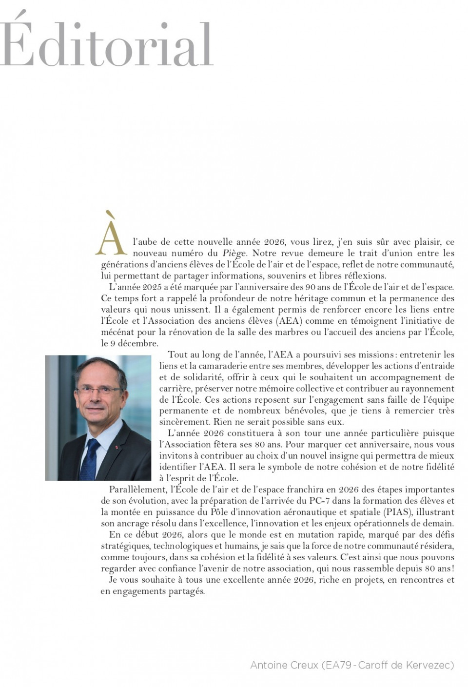 Vous constaterez ainsi que l'AEA en 2026, malgré ses vénérables 80 ans, a toujours bon pied, bon œil : De l’histoire, des récits aéronautiques, des idées spatiales et des réflexions tous azimuts, bien entendu. Des nouvelles fraîches de l’École, des promotions, des régions et de l’AEA, évidemment.