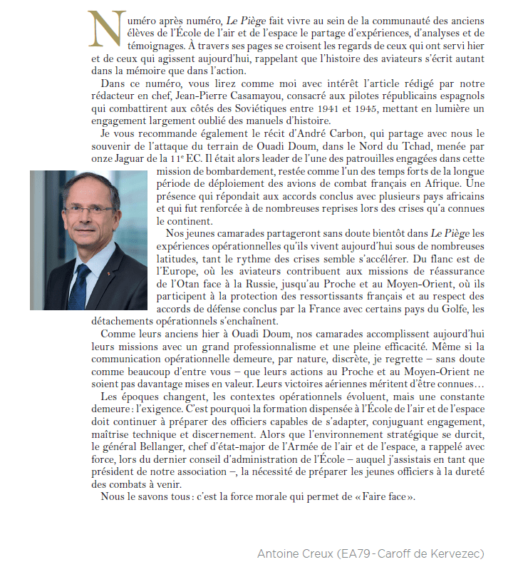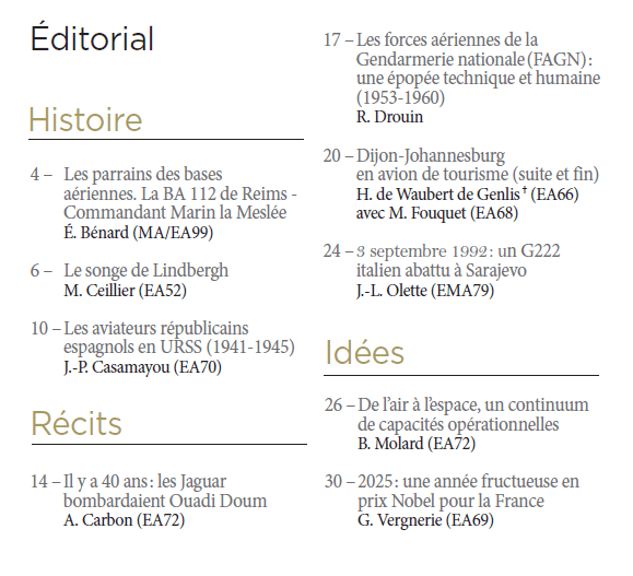 Ce numéro ne vous promet pas la lune comme la mission Artémis, mais il parlera, bien sûr, d’espace. Il évoque des félins qui ne larguaient pas que des œufs sur Ouadi-Doum, des hélicoptères de la Gendarmerie nationale engagés dans des opérations choc’olat, et d’un G222 italien qui n’a jamais pu livrer ses tablettes à Sarajevo. Il mentionne aussi des pilotes espagnols qui ont troqué le soleil pour le froid russe en veillant à ne pas se découvrir d’un fil.