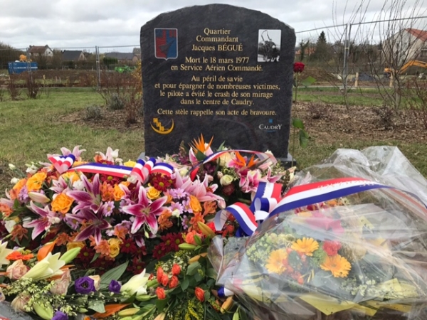 A Caudry (59), le 18 mars 2017, jour du 40ème anniversaire de la disparition du commandant Jacques Bégué (Promotion EA 63), un hommage solennel a été rendu à notre camarade qui est allé au bout de son devoir. En inaugurant une stèle et en posant la première pierre d'un lotissement qui portera son nom, le maire, ses adjoints et tout particulièrement les jeunes du conseil municipal ont voulu que cet acte de bravoure reste dans la mémoire des habitants.
